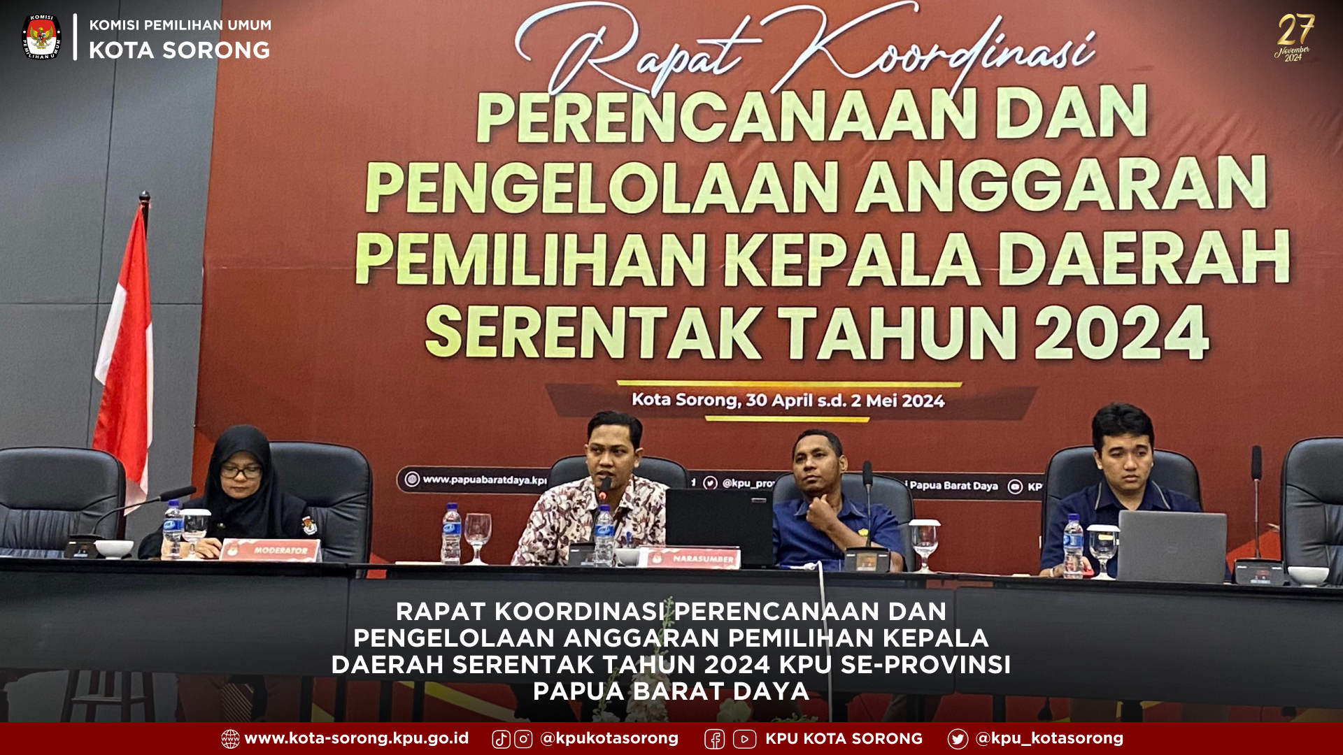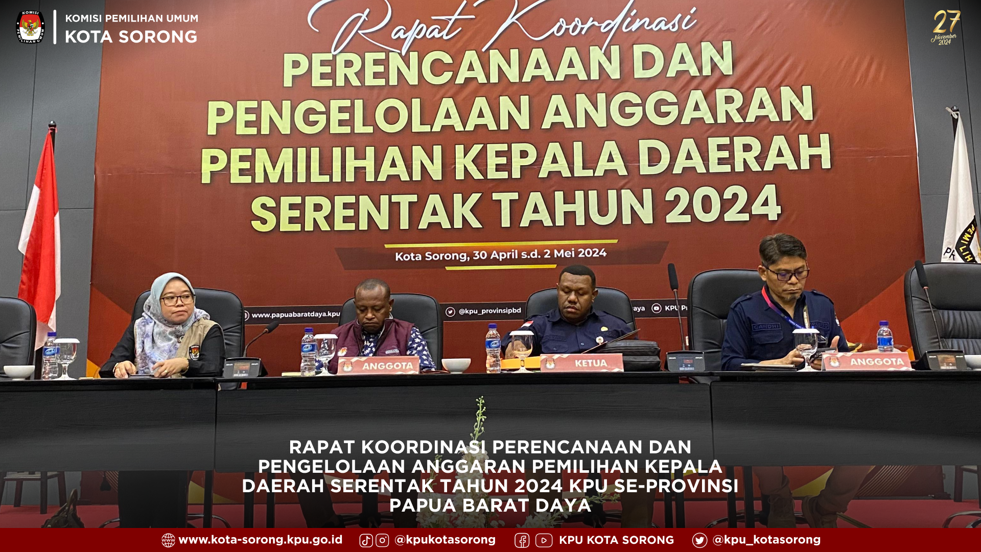 #TemanPemilih, Tanggal 30 April hingga 2 Mei 2024, KPU Provinsi Papua Barat Daya menggelar Rapat Koordinasi Perencanaan dan Pengelolaan Anggaran untuk Pemilihan Kepala Daerah Serentak Tahun 2024. Di hadiri oleh KPU se-Provinsi Papua Barat Daya, bersama-sama memastikan segala persiapan terbaik demi proses pemilihan yang adil dan transparan. Suara rakyat menjadi prioritas utama.