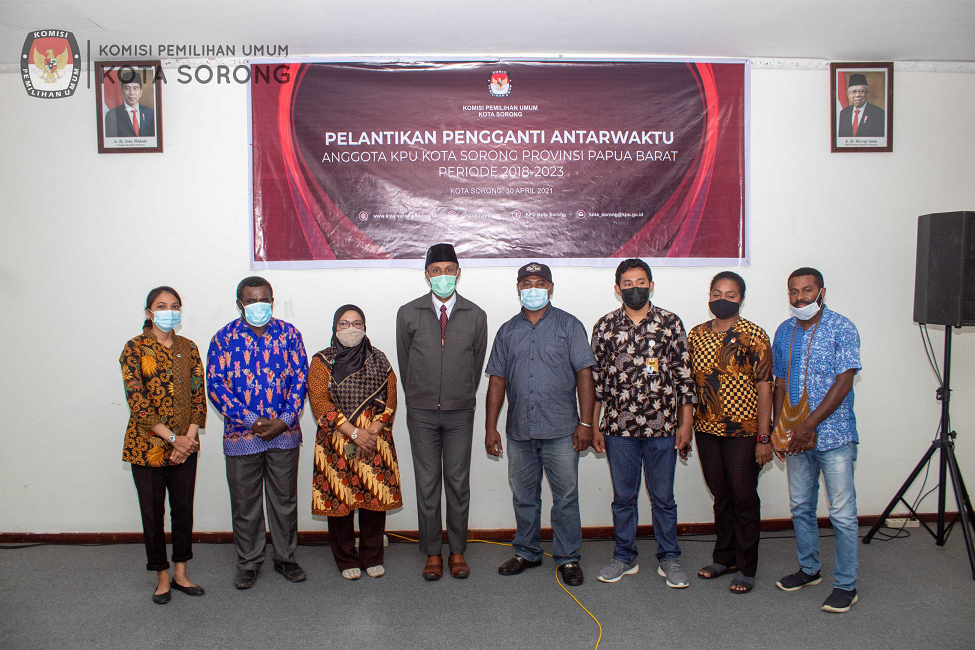 Kota Sorong, kota-sorong.kpu.go.id – Jumat (30/4) Ketua KPU RI Ilham Saputra melantik Pengganti Antar Waktu anggota KPU Kota Sorong periode 2018-2023 secara daring. Willem L. Butowoy dilantik menggantikan Jefry Asmuruf sebagai anggota KPU Kota Sorong.
