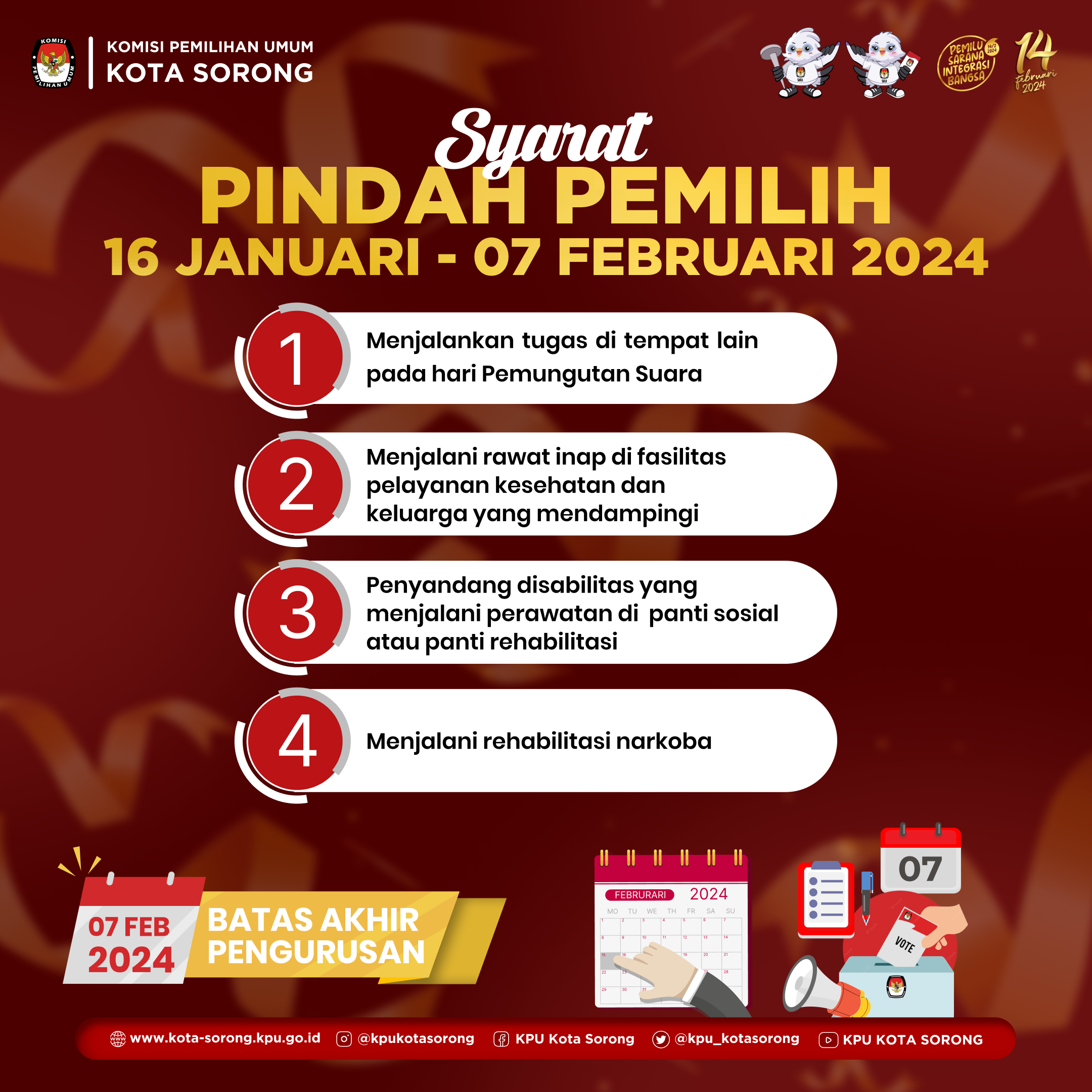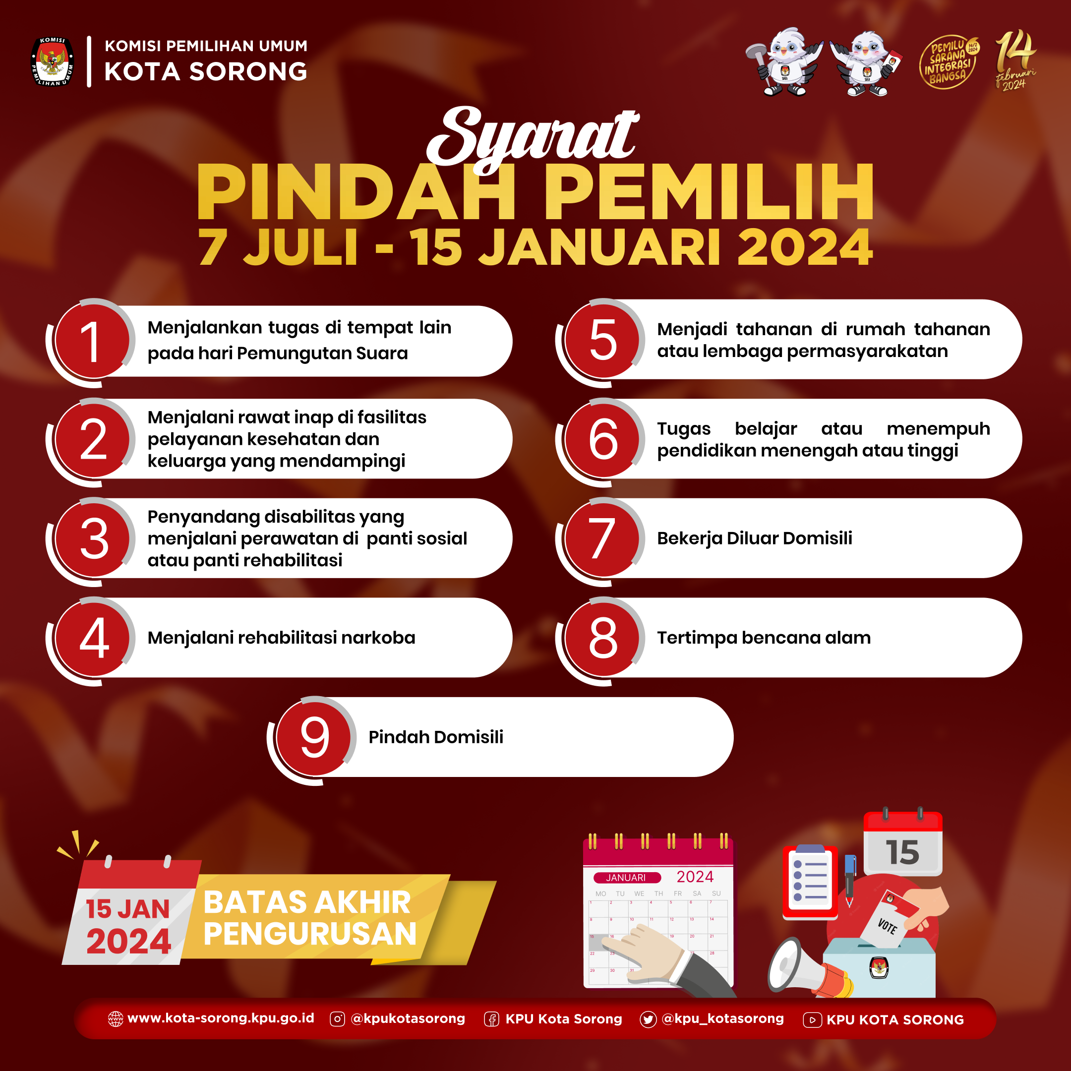 Ayo persiapkan urus pindah memilihmu sebelum tanggal 15 Januari 2024 saat dibutuhkan dan sampai jumpa di TPS untuk menggunakan hak pilih kita.