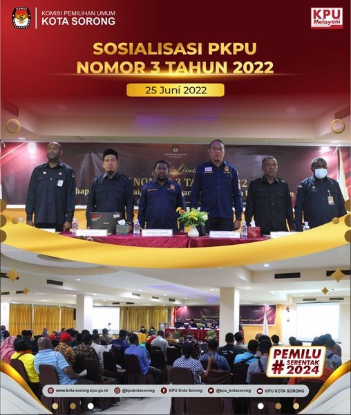 Maka dari itu, KPU Kota Sorong mengelar kegiatan sosialisasi PKPU Nomor 3 Tahun 2022 tentang Tahapan dan Jadwak Penyelenggaraan Pemilihan Umum Tahun 2024, yang berlokasi di Hotel Sahid Mariat, Kota Sorong, Sabtu (25/06).