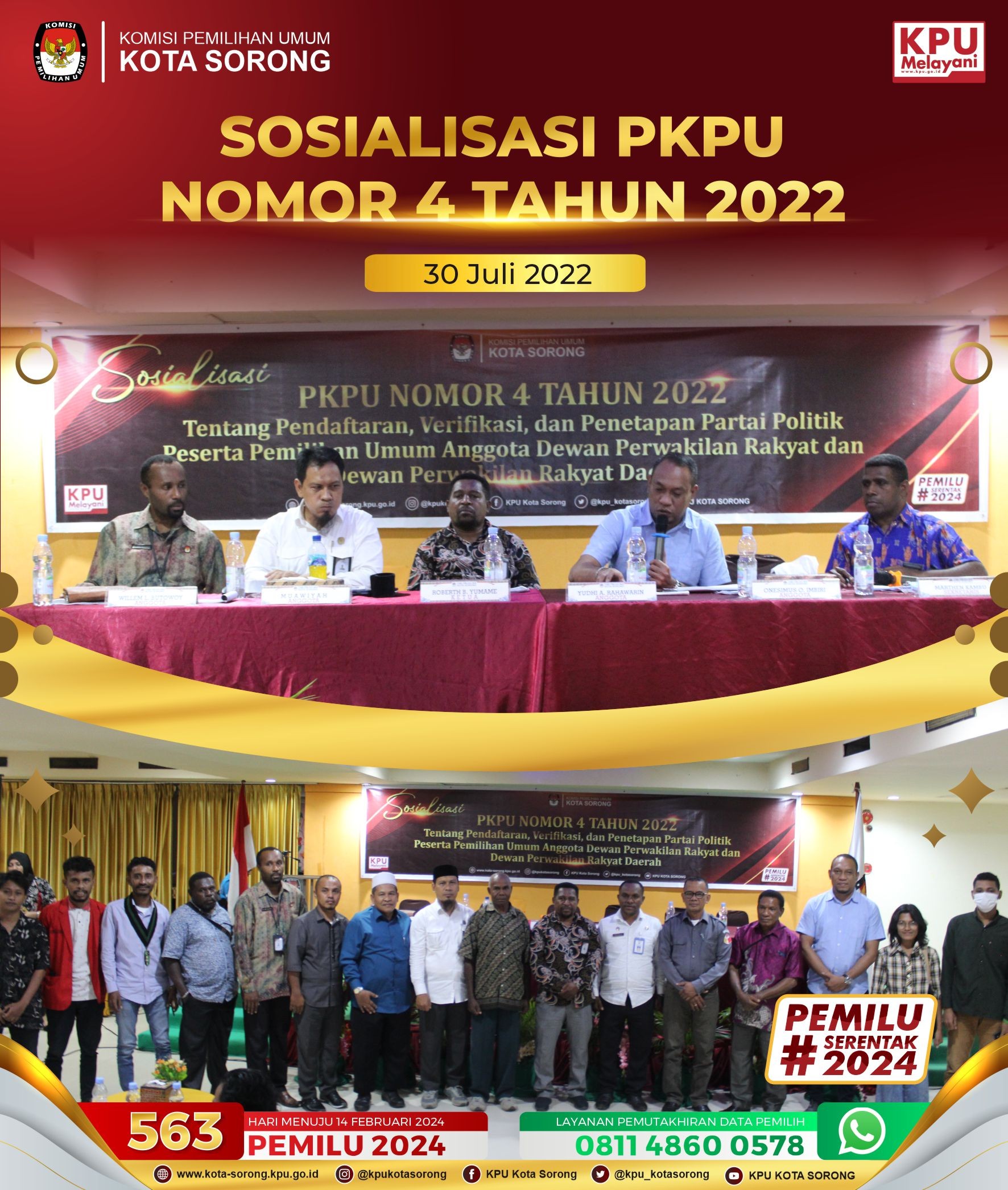 Sosialisasi yang dimaksudkan adalah terkait informasi tentang tahapan, program dan jadwal Pemilu. Sosialisasi tentang Verifikasi Partai Politik dan Pemutakhiran Data Pemilih tingkat Kota Sorong. Sosialisasi ini perlu dilakukan bukan hanya kepada Pemerintah Daerah, tetapi peserta pemilu, forkopimda maupun kepada masyarakat luas.